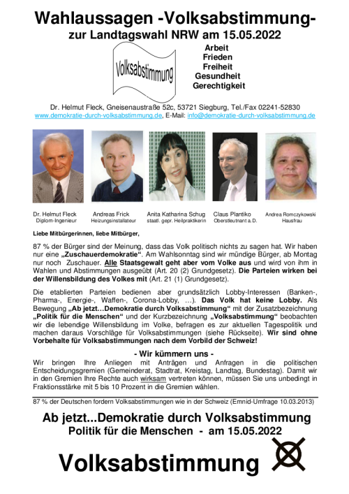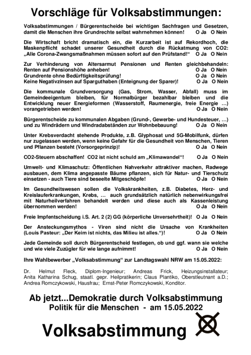 Wir wollen für Sie mit "Volksabstimmung" in den Landtag und Bundestag
