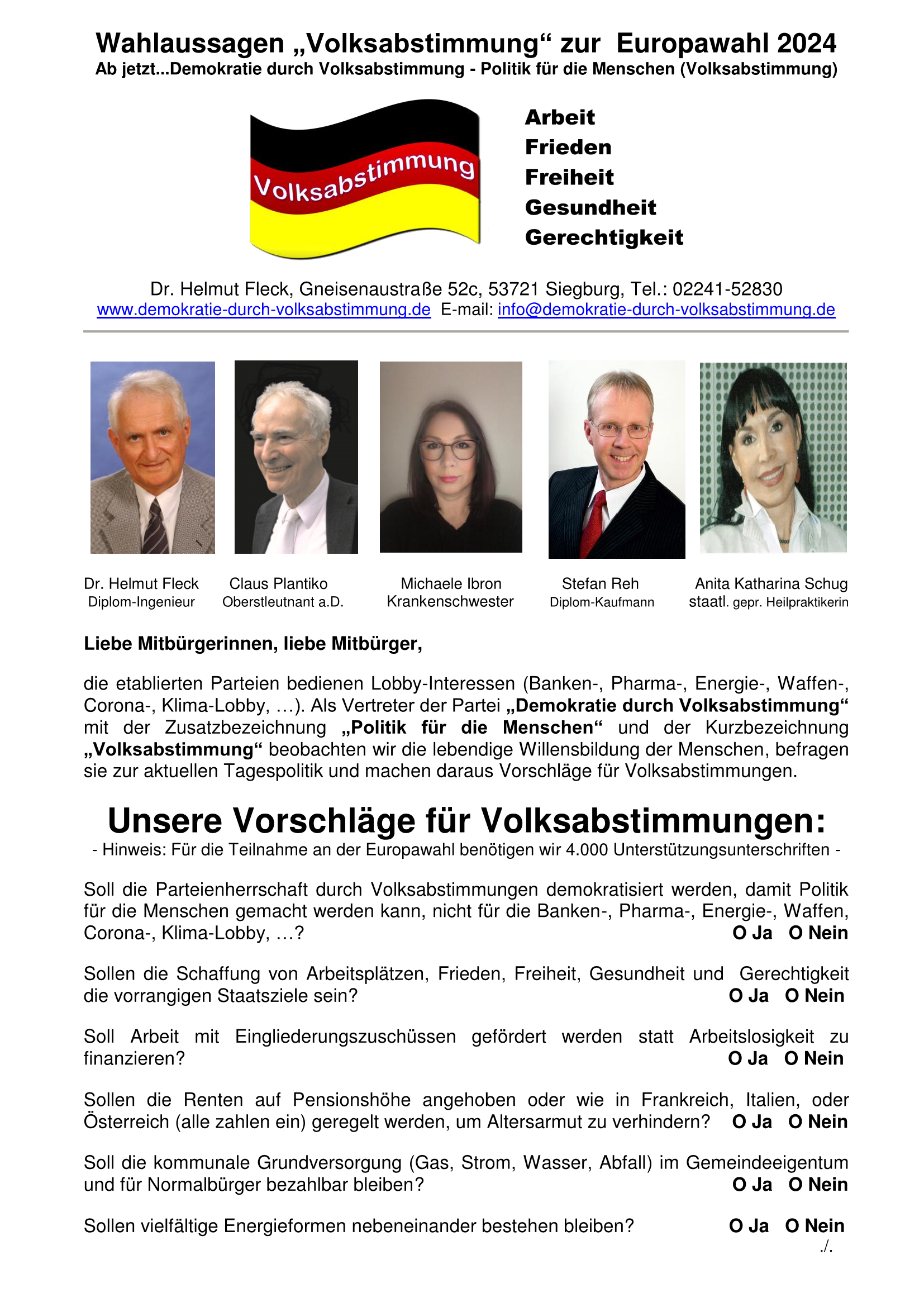 Wahlprogramm „Volksabstimmung“ zur Europawahl (Downlad PDF-Datei)